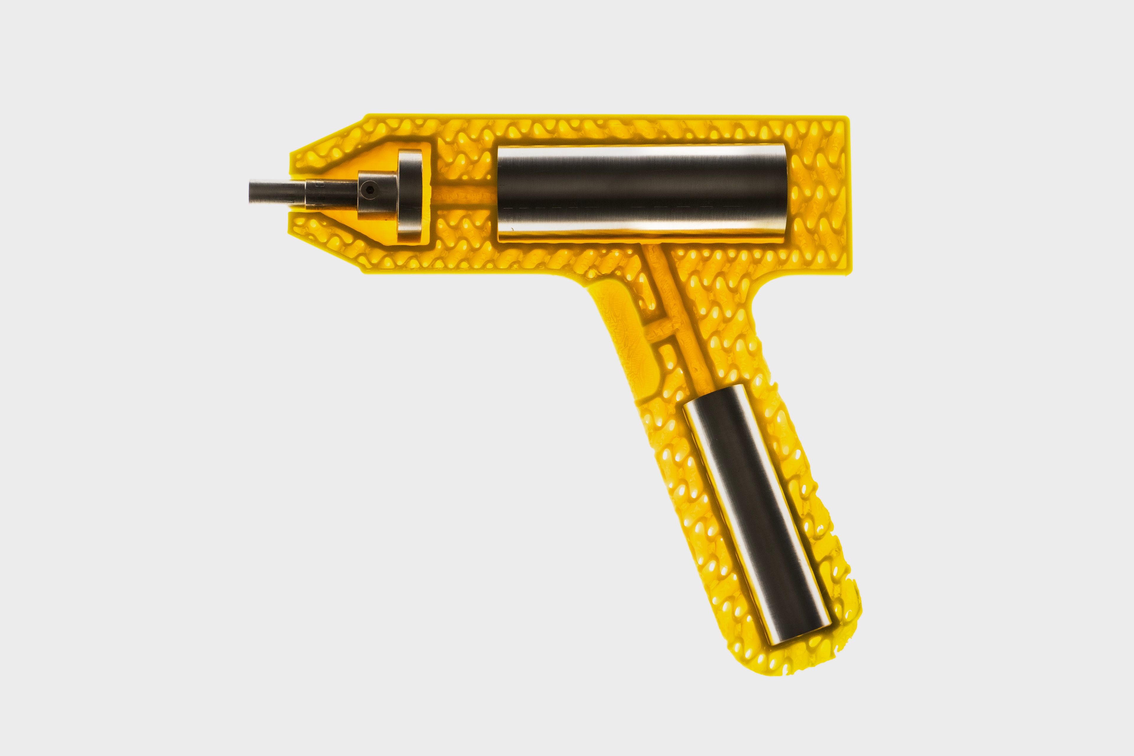 Hand-held tools such as drills often produce vibrations that make extended use uncomfortable. By introducing intricate geometries into their handles, these vibrations can be absorbed, making the tools easier to hold for longer periods without requiring springs or additional insulating materials.
