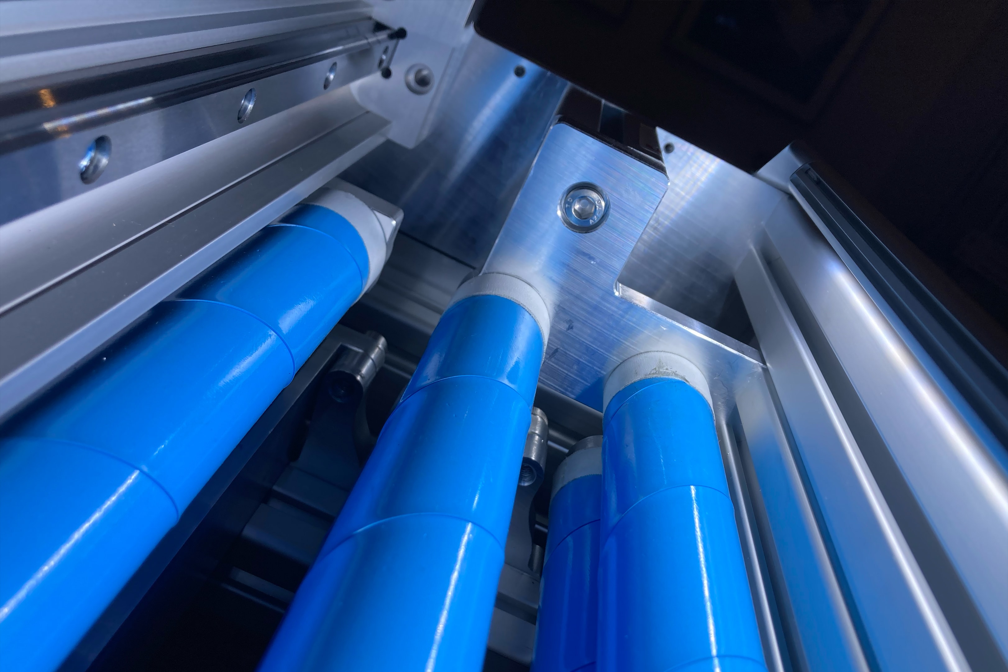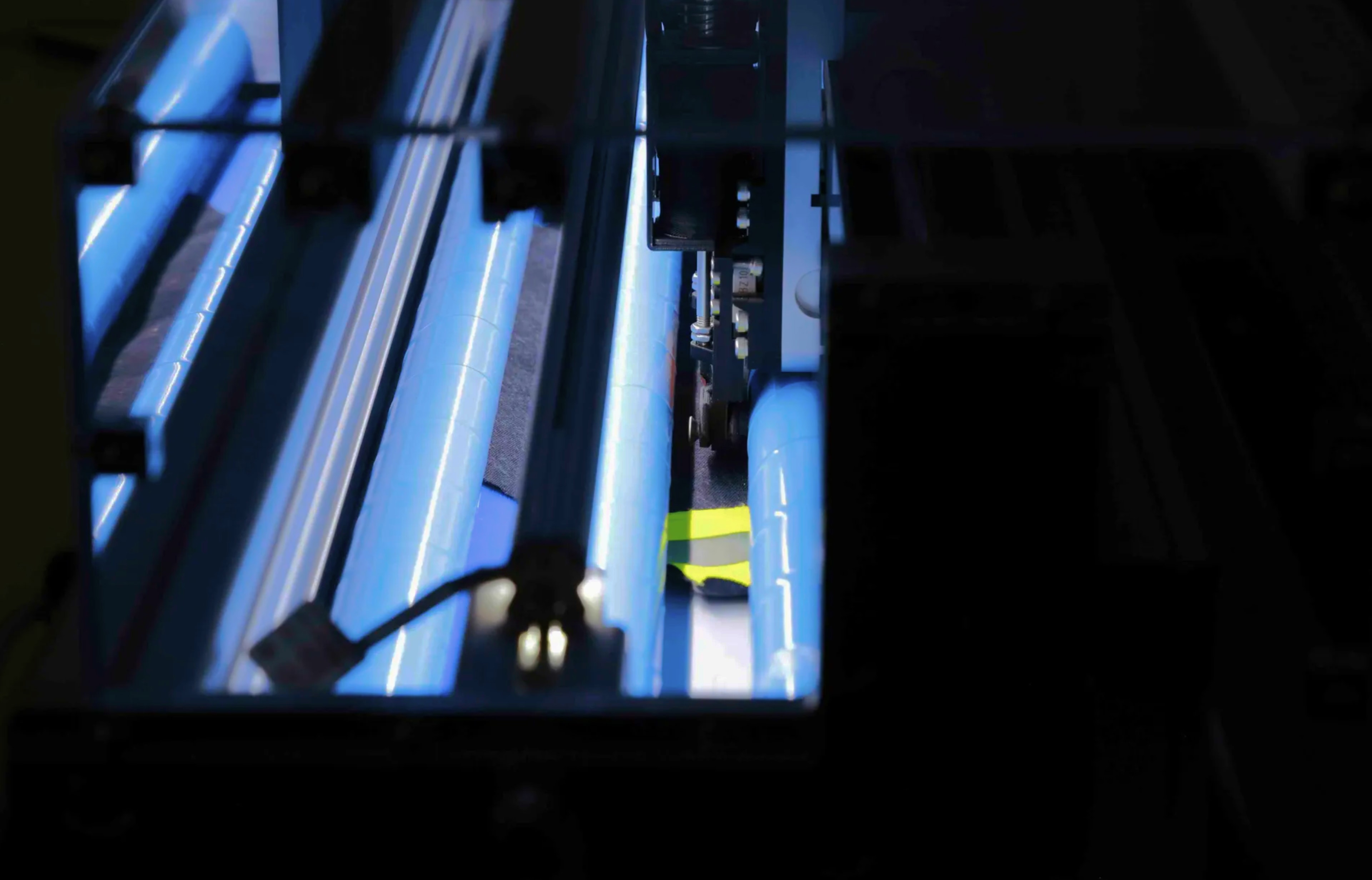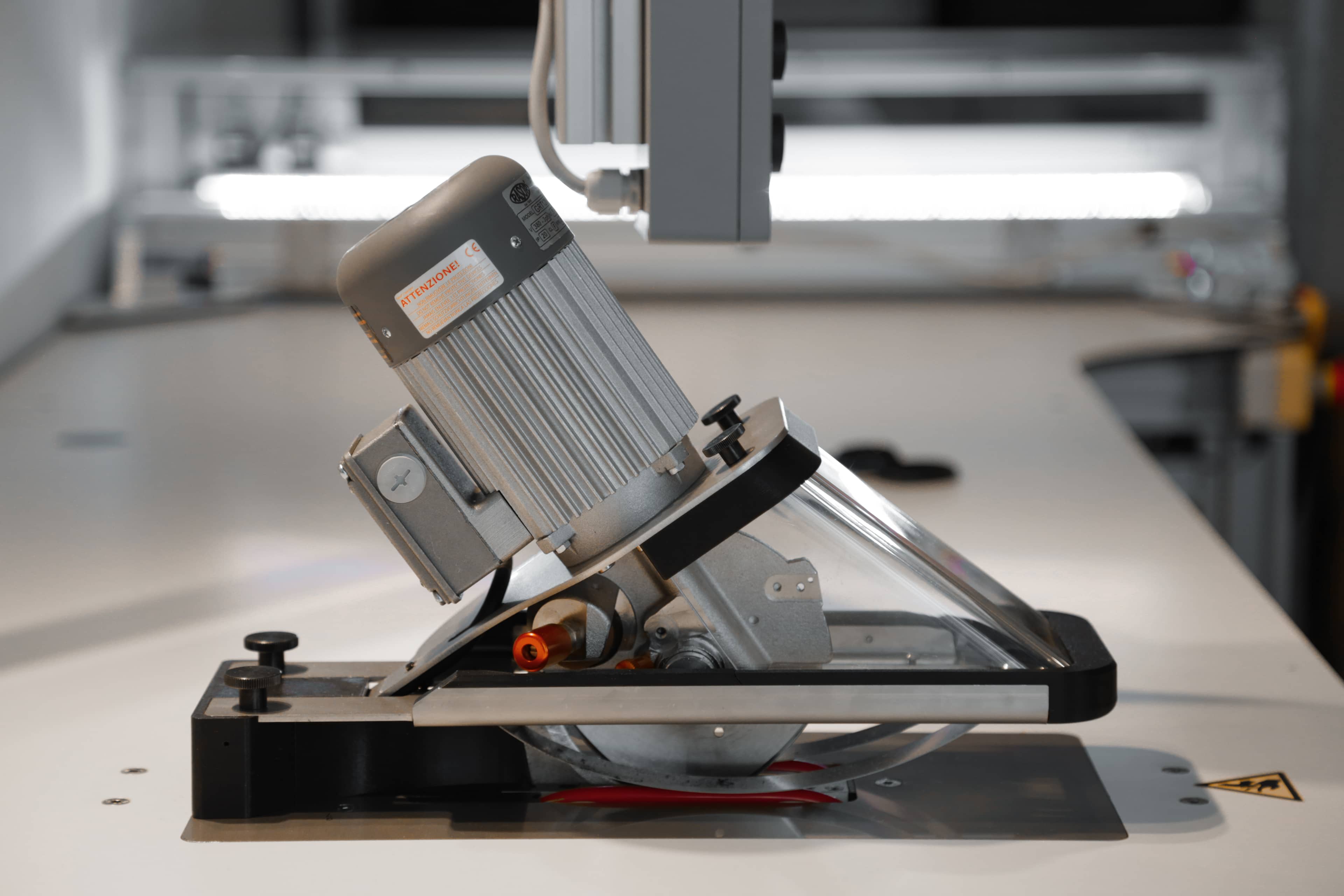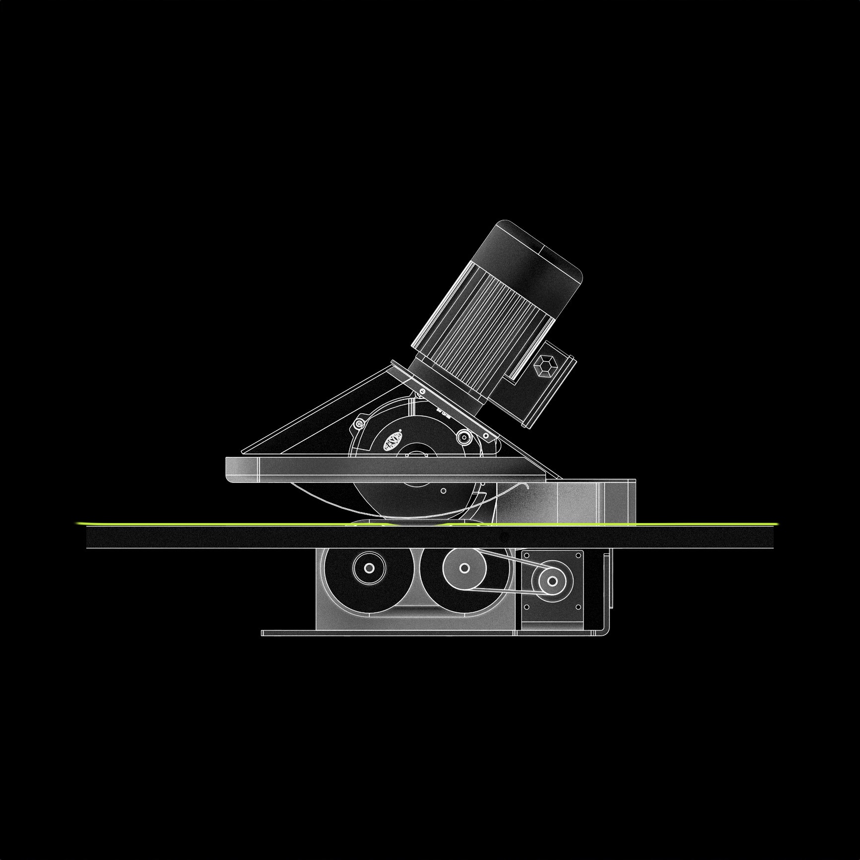 After identifying the best contours along which to cut the garments, we then designed a custom, easy-to-use cutting machine. Mounted within the tabletop, the operator only has to position the garment along the defined segmentation lines and feed it through the machine, and within 4 minutes cutting is complete.