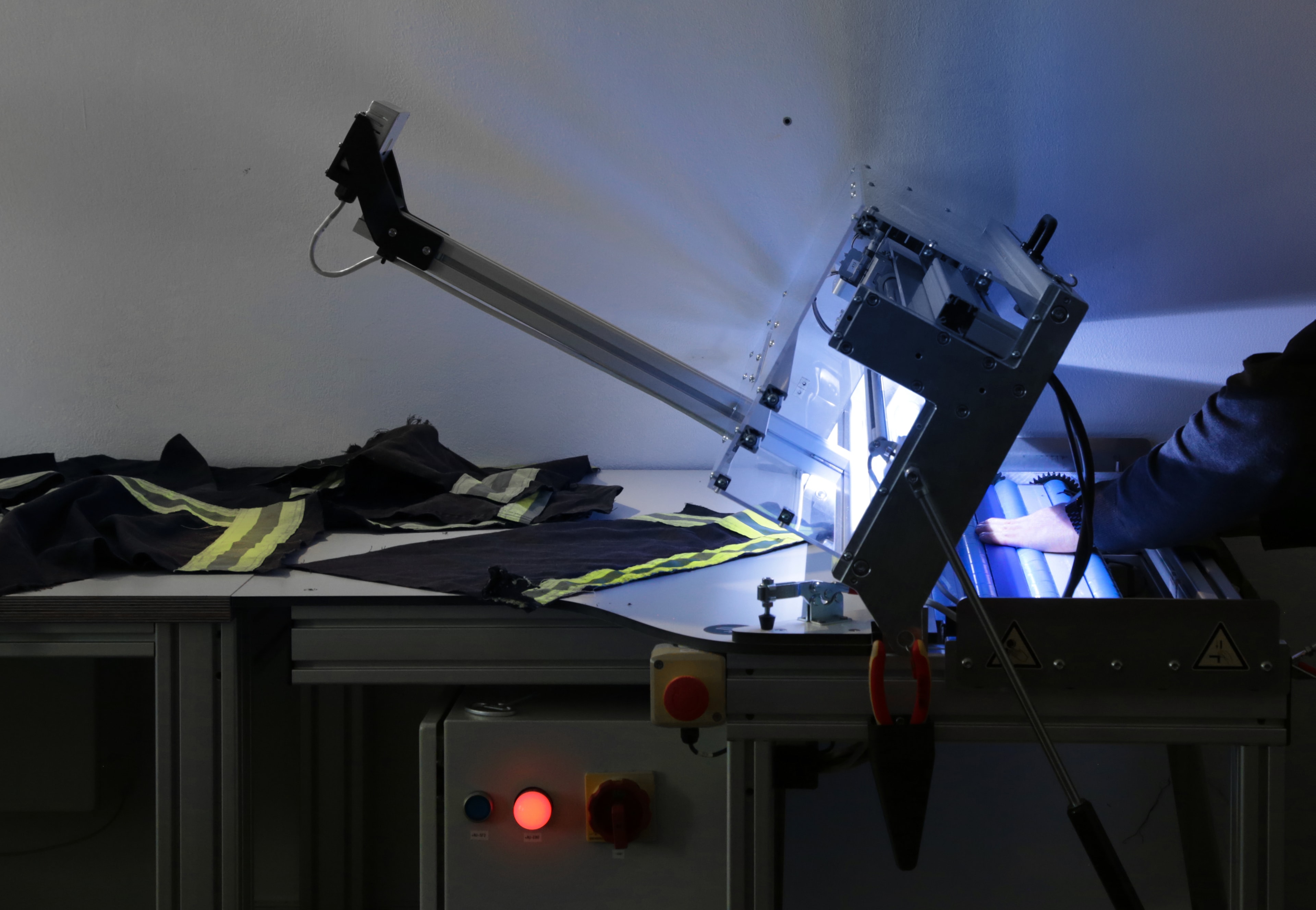Disassembly forms a crucial part of the larger process to recycle valuable materials from firefighter suits. In order to increase their technical and commercial value, it is imperative to maximize the fiber length of the recycled yarns. With this in mind, we set about developing a workstation that optimized the recovery of pure aramid cloth pieces that could then be mechanically processed into reusable fibers.