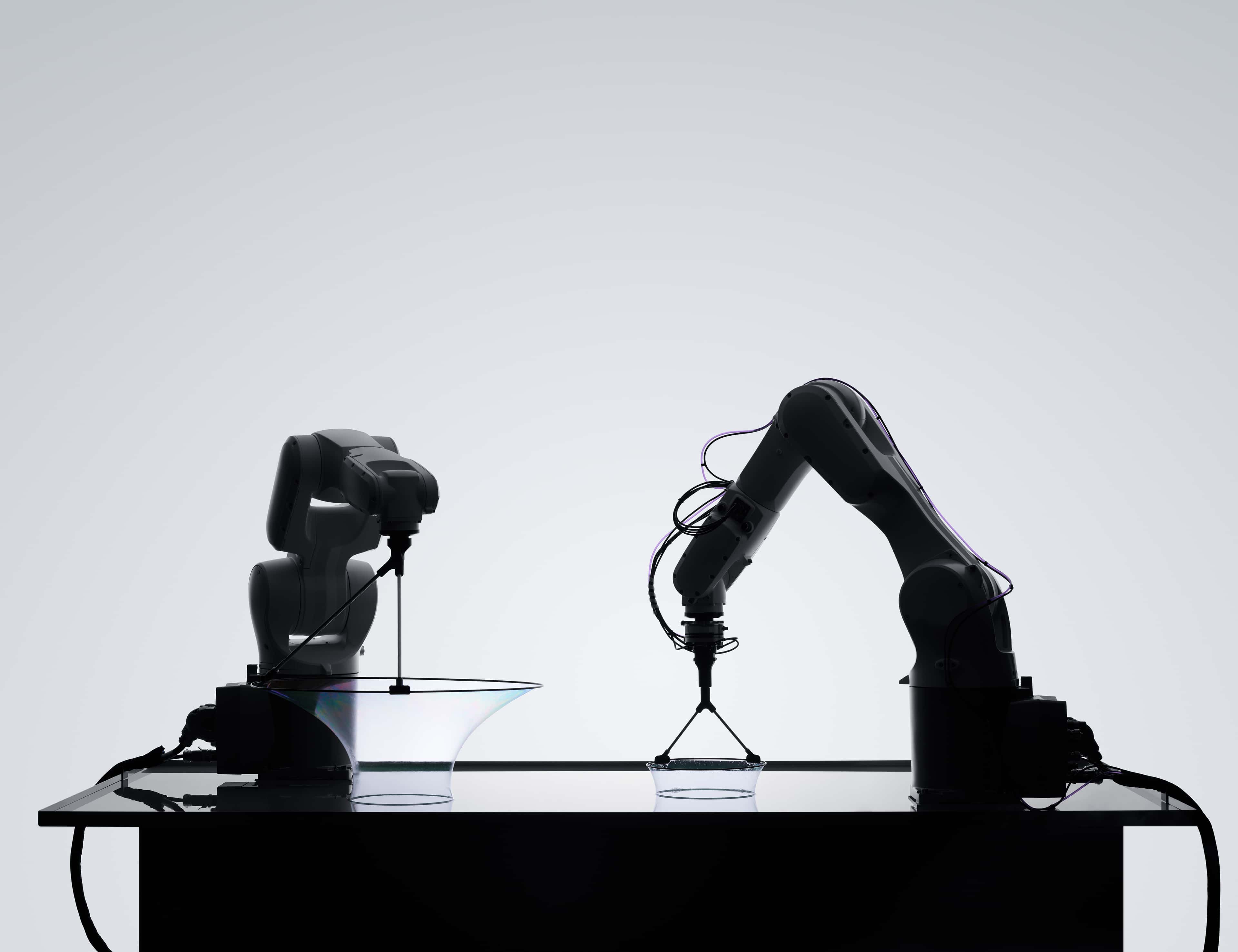 We began this project as a challenge to ourselves. With two robotic arms in the office, we wanted to explore something technically demanding but creatively open. We have always loved building tools and programming machines, but this time we wanted to do something different—something that brought together the delicacy of an elusive material with the robustness of industrial hardware.